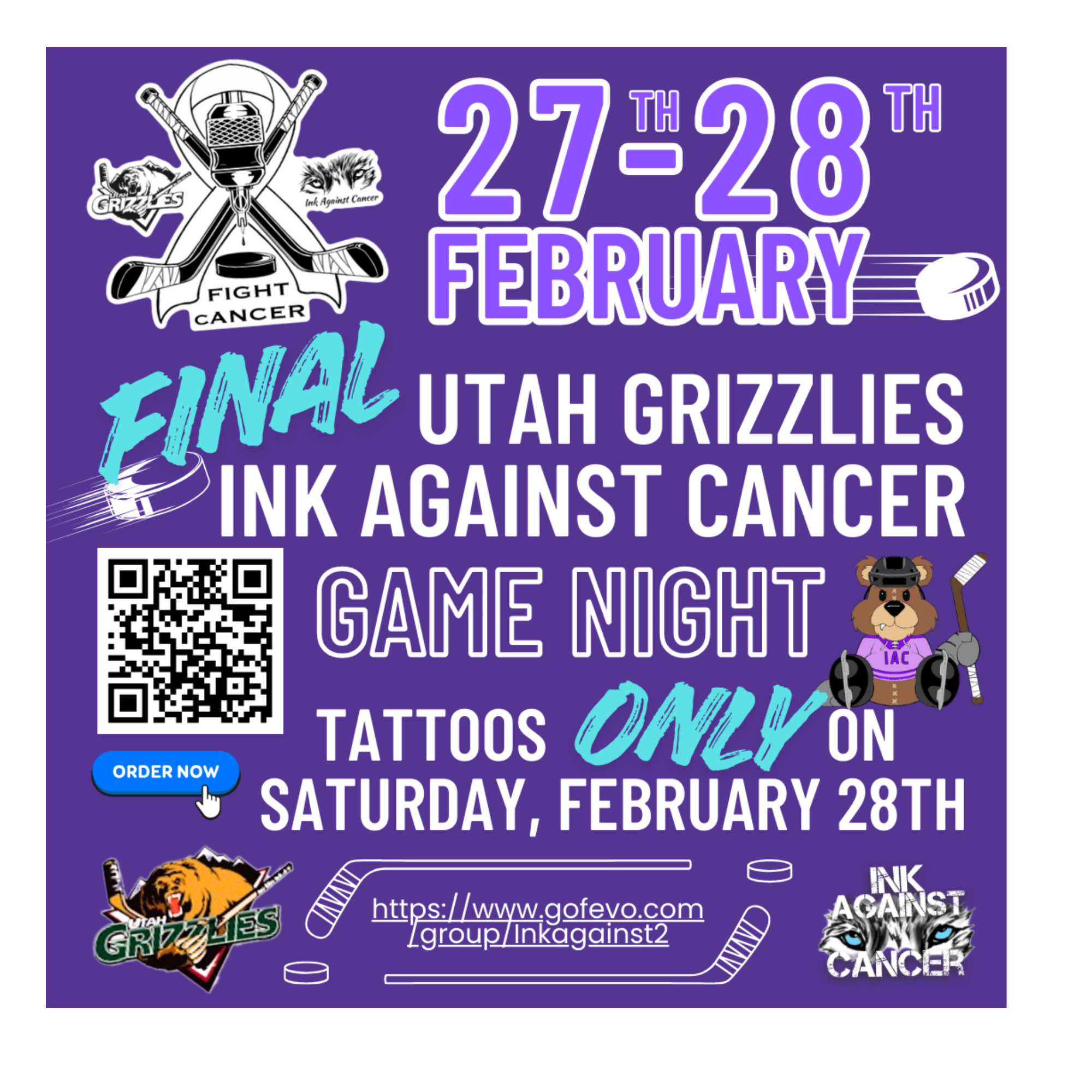 Whether you come to get tattooed, cheer on the Grizzlies, or simply show up in support—your presence helps send a message to every Cancer Warrior: